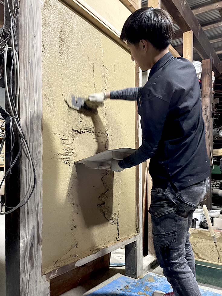 竹内左官技工の新人さんは仕事終わりにも夜中まで練習しているんです。
