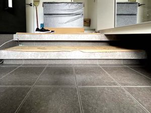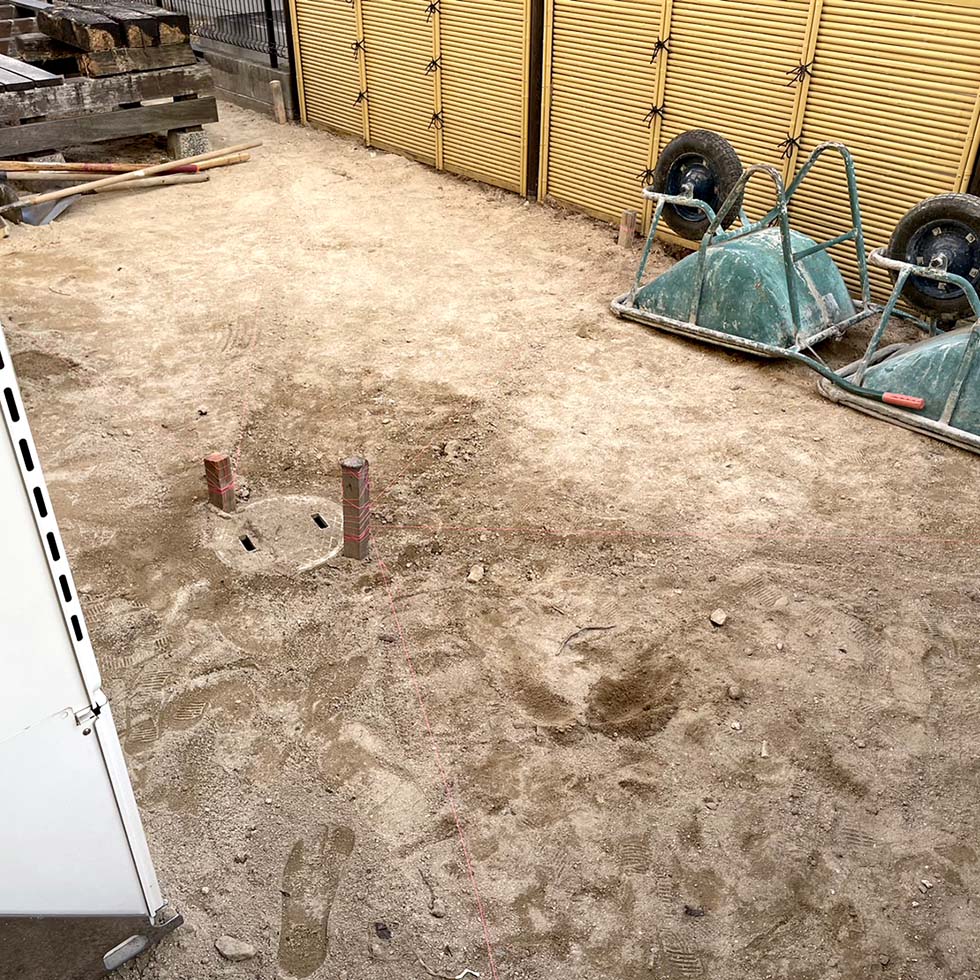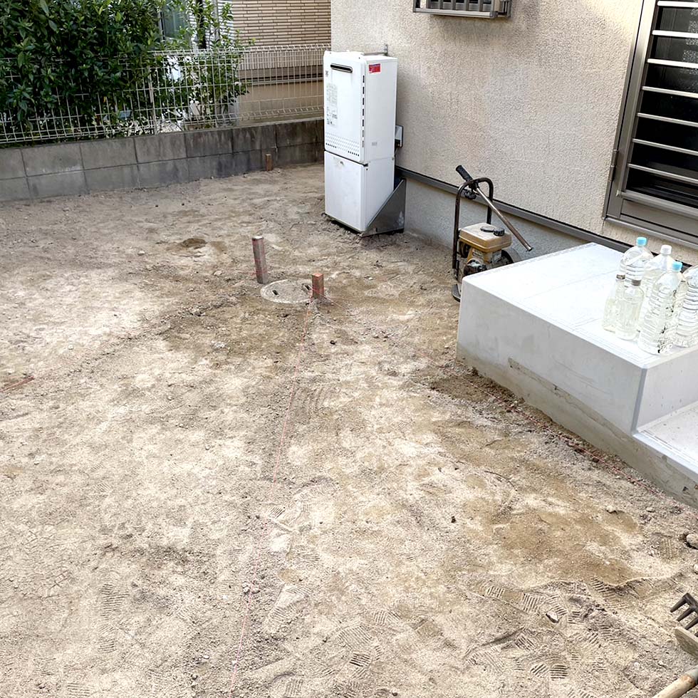 水勾配を見ながらコンクリートを塗る下地を丁寧に仕上げていきます。