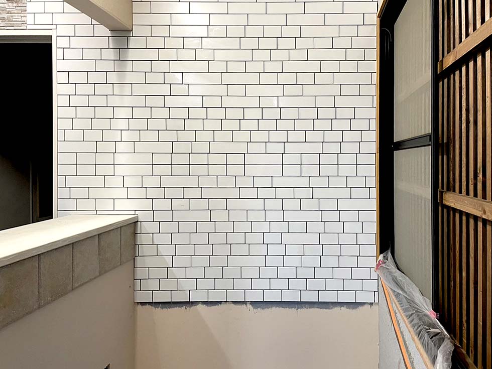 小口平タイルと二丁掛タイル 2023年10月10日 最終更新日時 : 2023年10月18日 takeuchi-sakan こんにちは。竹内左官技工です。広島で左官業を営んでおります。 小口平タイルと二丁掛タイルのランダム貼りの施工をしてきました。ちょっと動きがあってカッコ良く仕上がったと思います。 小口平タイルとは、レンガの一番狭い部分を小口面というので、その部分と同じ面積のタイルを言います。10cm×6cmです。二丁掛タイルはその小口平タイル2枚分のタイルの事です。正確には目地部分が加わります。 竹内左官技工ではちょっとしたデザインを提案したりご相談にも応じます。ぜひ、一度お問合せください〜。